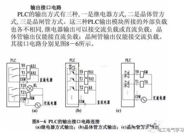 PLC输出方式不同,输出负载所接的电源类型也不同。如图所示:这是PLC输入端和输出端的基本接线,属于PLC基本知识。