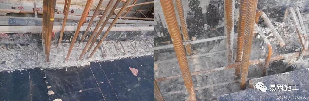 3)、污筋:所有钢筋上污染的水泥未清干净不绑。