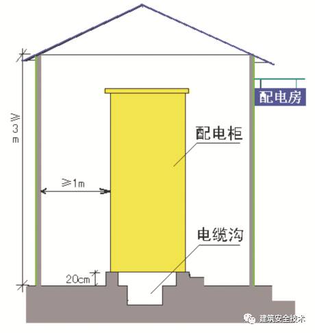 2. 配电柜侧面的维护通道宽度不小于1m;配电室顶棚与地面的距离不低于3m。