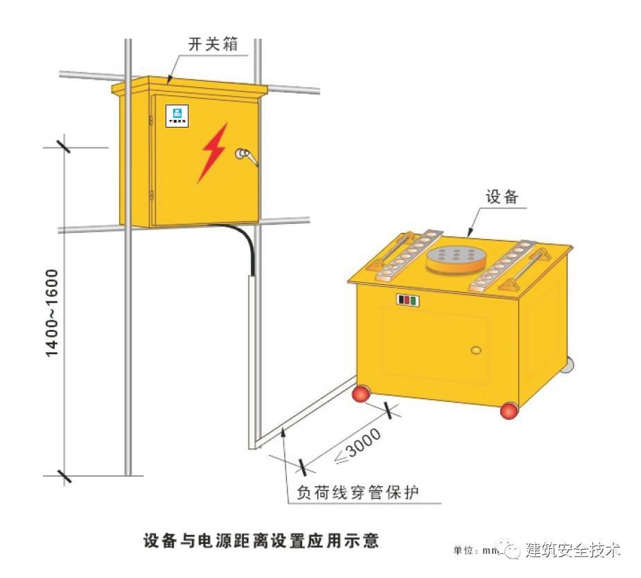 3、配电箱、开关箱应装设端正、牢固;固定式配电箱、开关箱的中心点与地面的垂直距离应为1.4~1.6m;移动式配电箱、开关箱应装设在坚固的支架上,其中心点与地面的垂直距离宜为0.8~1.6m。(JGJ46-2005第8.1.8条)